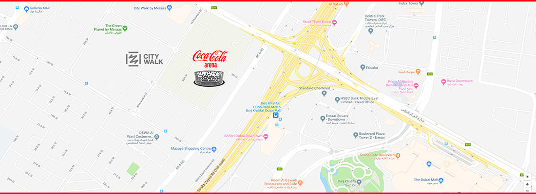 The Coca-Cola Arena is conveniently located off Sheikh Zayed Road within the popular urban